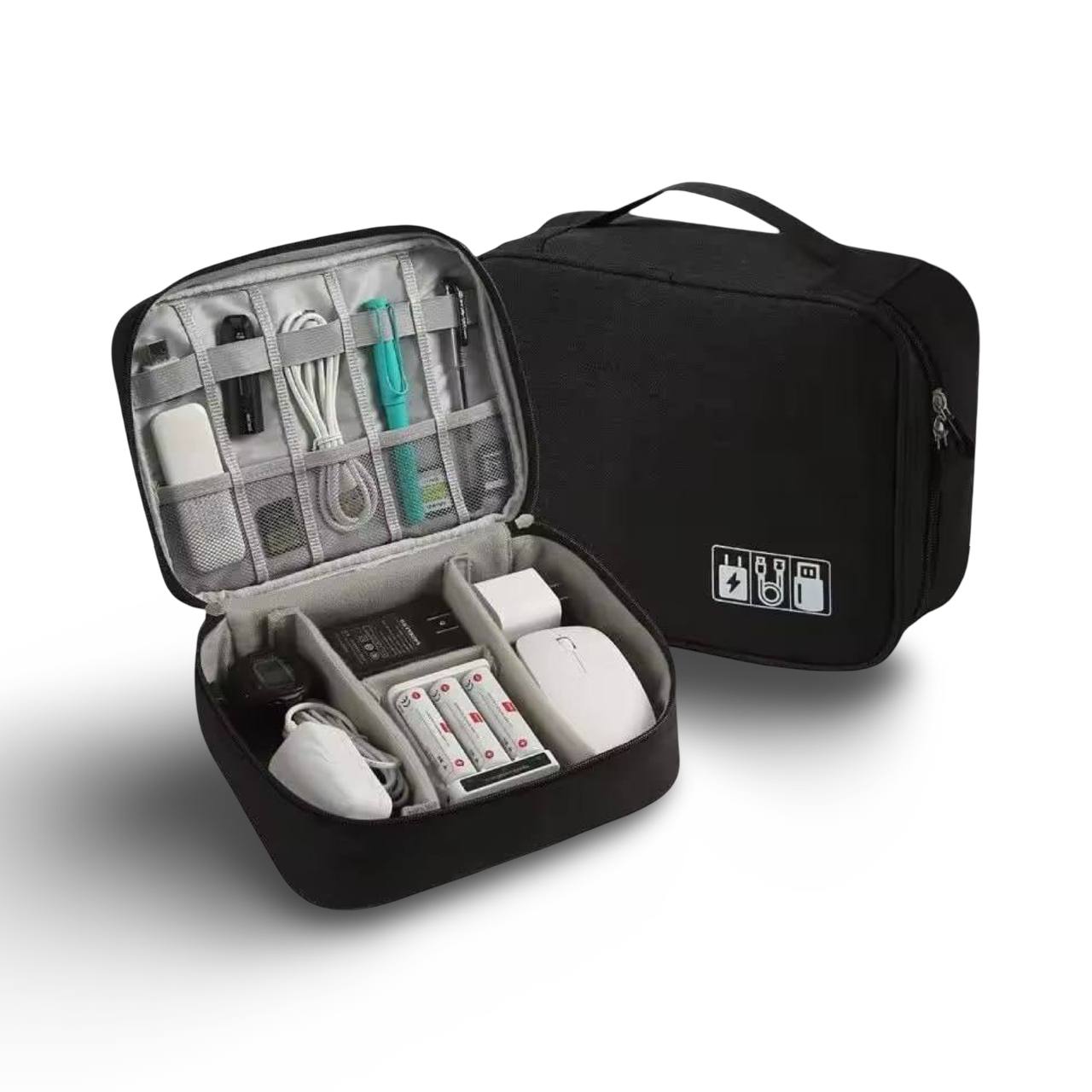 With dimensions of 24 × 9 × 18 cm and weighing only 170g, this compact bag fits neatly into any carry-on or backpack. Multiple mesh pockets and dividers allow you to store charging cables, adapters, memory cards, power banks, or even personal toiletries — all in one place.
