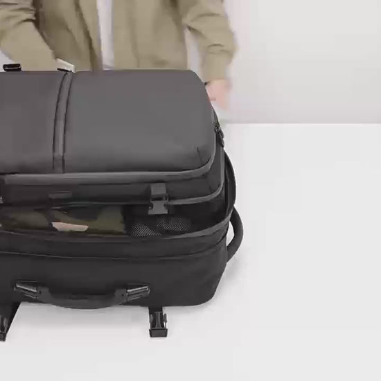 MetroVault Roller Pro is your modular suitcase-backpack: a sleek soft-shell body in durable Oxford, a telescopic handle, silent wheels, and a built-in vacuum compression chamber. Press, compress — and suddenly you’ve packed more with less bulk. Minimal form, maximum utility for urban travel.